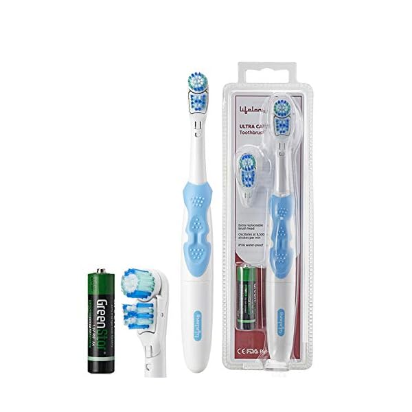 Give yourself another reason to show off that wide smile of yours. Lifelong Ultra Care Toothbrush features a brush head with Rubberized Bristles and an Action Cup that helps whiten teeth by removing surface stains. Compared to a manual toothbrush, the Ultra Care toothbrush has better plaque removal and is gentle on the gums. The innovative battery toothbrush that has unique soft bristles that oscillate at 8500 strokes per minute. This toothbrush has a replaceable head that can be easily changed every 3 months as recommended by dentists and hygienists. For a seamless experience, the brush has been designed to be slim, lightweight, and quiet.